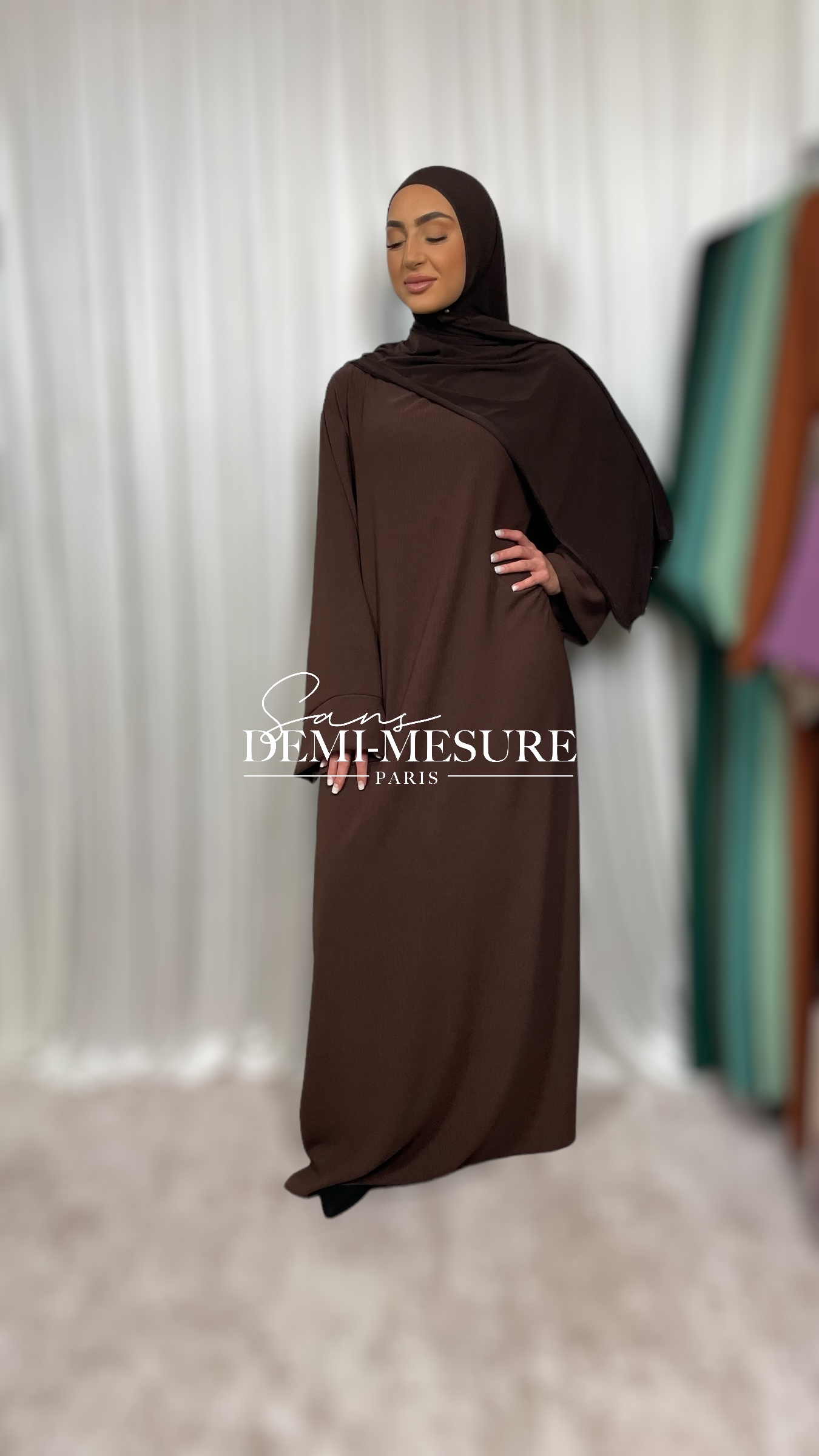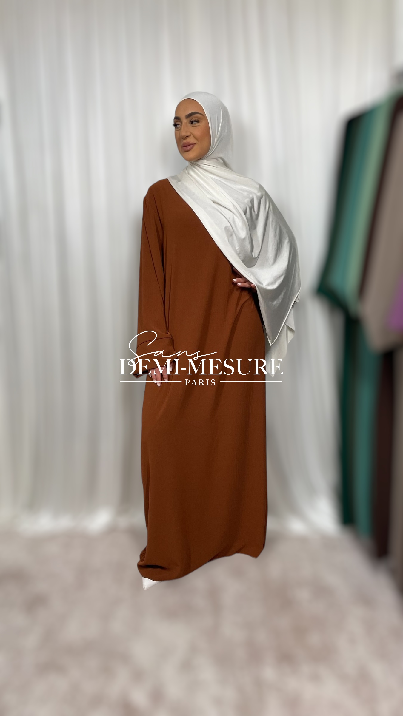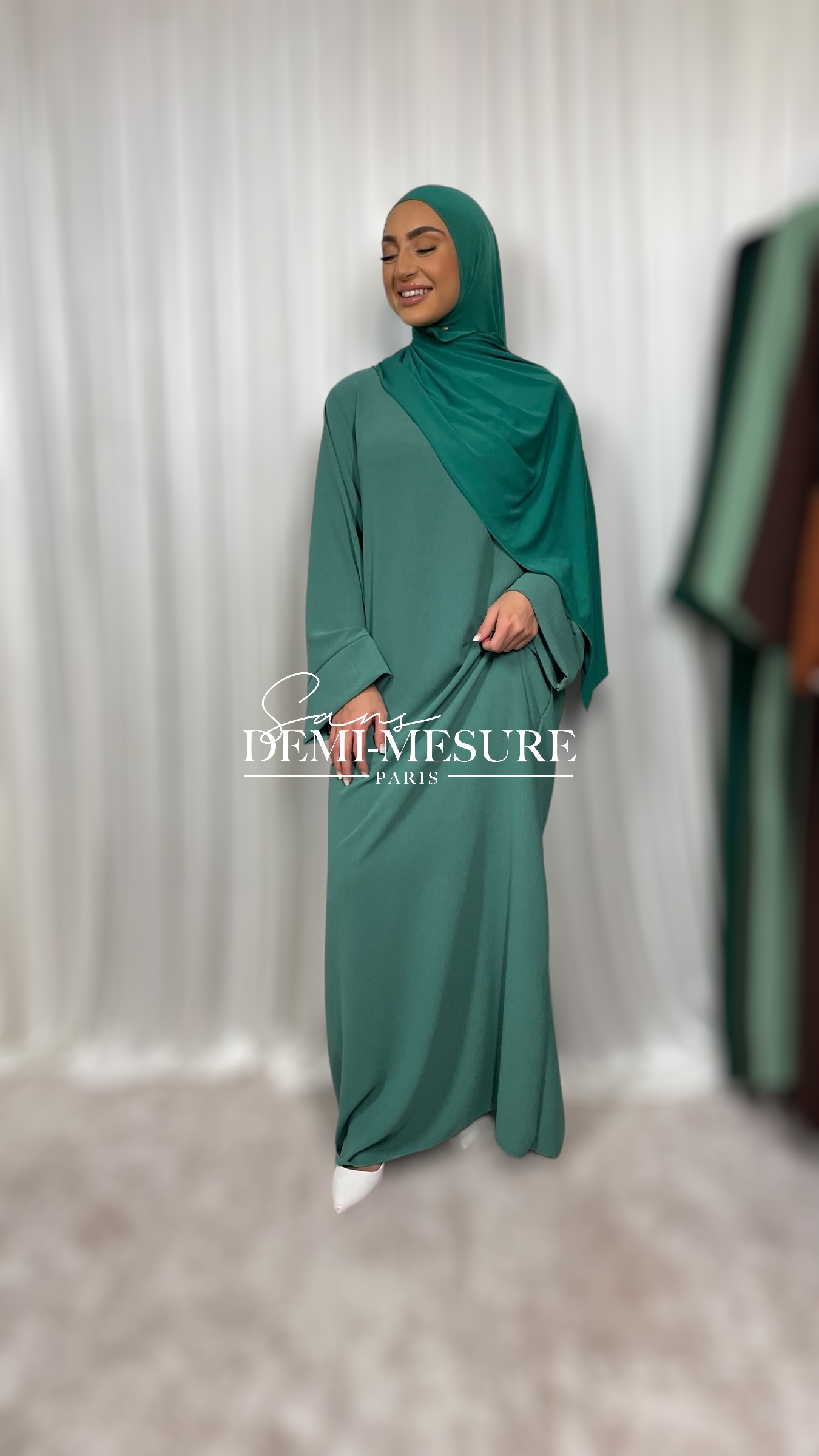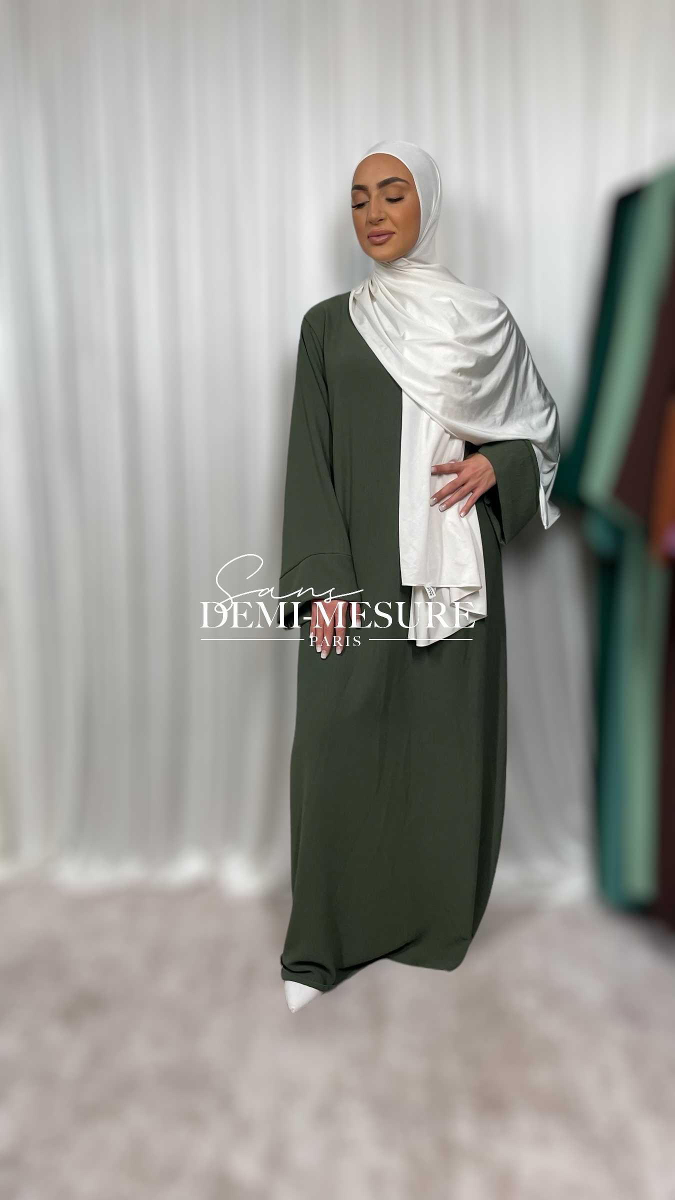 Cette robe longue est idéale pour les femmes musulmanes ou celles recherchant une robe couvrante et confortable au quotidien. Parfaite pour les moments de prière ou pour une tenue quotidienne élégante et pudique. Sa simplicité permet de l’associer facilement avec différents accessoires ou sous-vêtements pour s’adapter à toutes les occasions. Cette abaya basic jazz est l’alliance parfaite entre confort, modestie et style au quotidien. Ajoutez-la à votre garde-robe et profitez d’une pièce essentielle pour chaque jour ! Nous vous proposons également la abaya basic en tissu soie de médine.